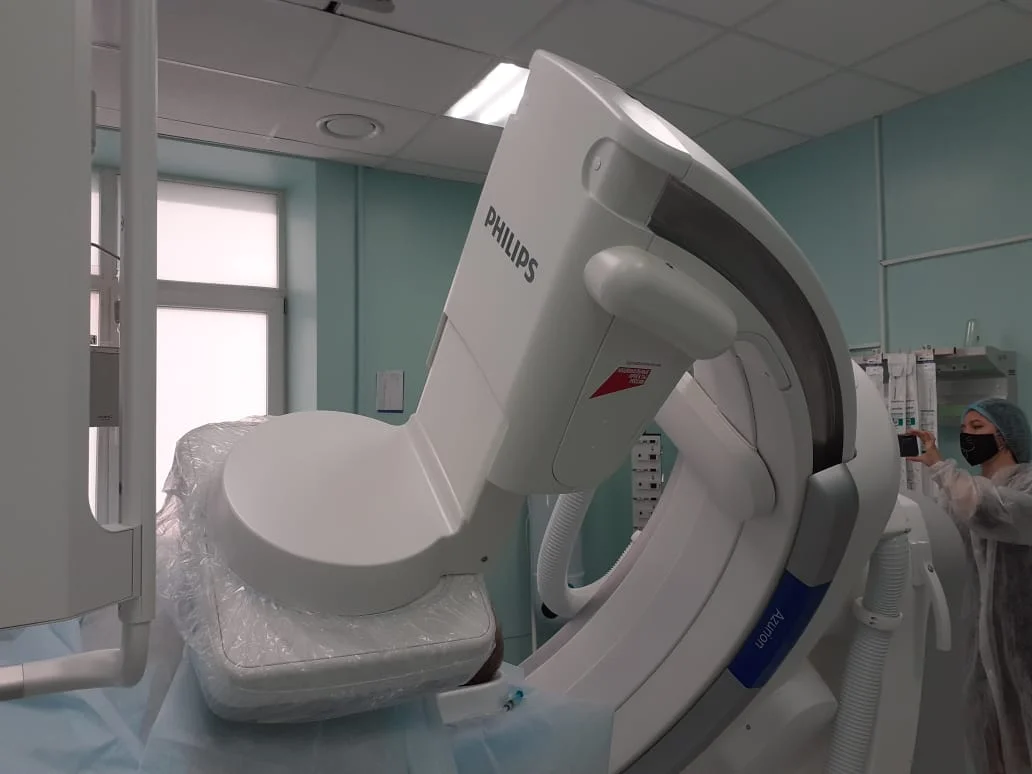 Также в стационаре ОКБ заработал новый 128-срезовый компьютерный томограф, приобретенный по программе борьбы с сердечно-сосудистыми заболеваниями также в рамках нацпроекта. Серьезные оперативные вмешательства на сосудах стали выполняться на базе больницы в региональном сосудистом центре с помощью нового ангиографа. На его приобретение по нацпроекту было направлено 72,8 миллиона рублей.