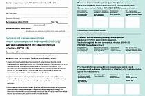 Как сообщили 30 марта в министерстве здравоохранения региона, указанным сертификатом удостоверяется факт проведения вакцинации от новой коронавирусной инфекции COVID-19 и он заверяется подписью врача и печатью медицинской организации, в которой осуществлялась иммунизация. Документ составлен на русском языке с дублированием на английском.