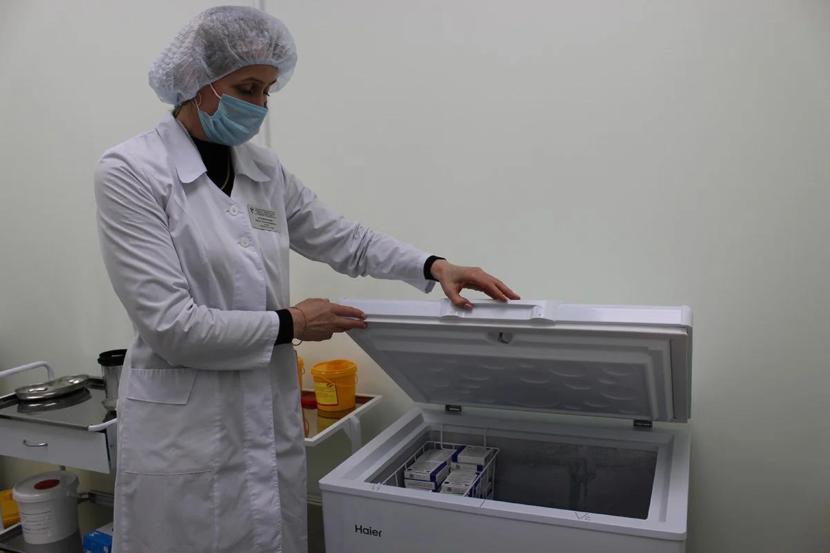 Здесь оборудовали специальный прививочный пункт с отдельными помещениями для регистрации пациентов и осмотров двумя врачами перед вакцинацией, процедурным кабинетом. Также перед входом на проведение иммунизации организована уютная зона для заполнения анкет с удобными столиками и креслами. Для хранения вакцины приобрели морозильную камеру.