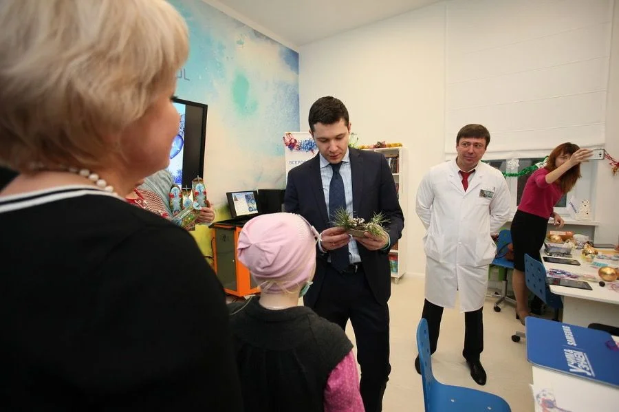 Антон Алиханов посетил один из двух новых специализированных учебных классов, открытых в учреждении в рамках пилотного проекта «УчимЗнаем» в сентябре этого года для детей, которые проходят здесь длительный курс лечения или реабилитации. Одновременно в классе могут получать знания 13-15 школьников. «Удачи и успехов в учебе! Скорее возвращайтесь в школу! Мы вас любим и ждем!» - такое пожелание оставил в кабинете на стене отзывов глава региона. В ответ ребята поблагодарили Антона Алиханова за поздравление и подарили новогодний сувенир, сделанный своими руками.